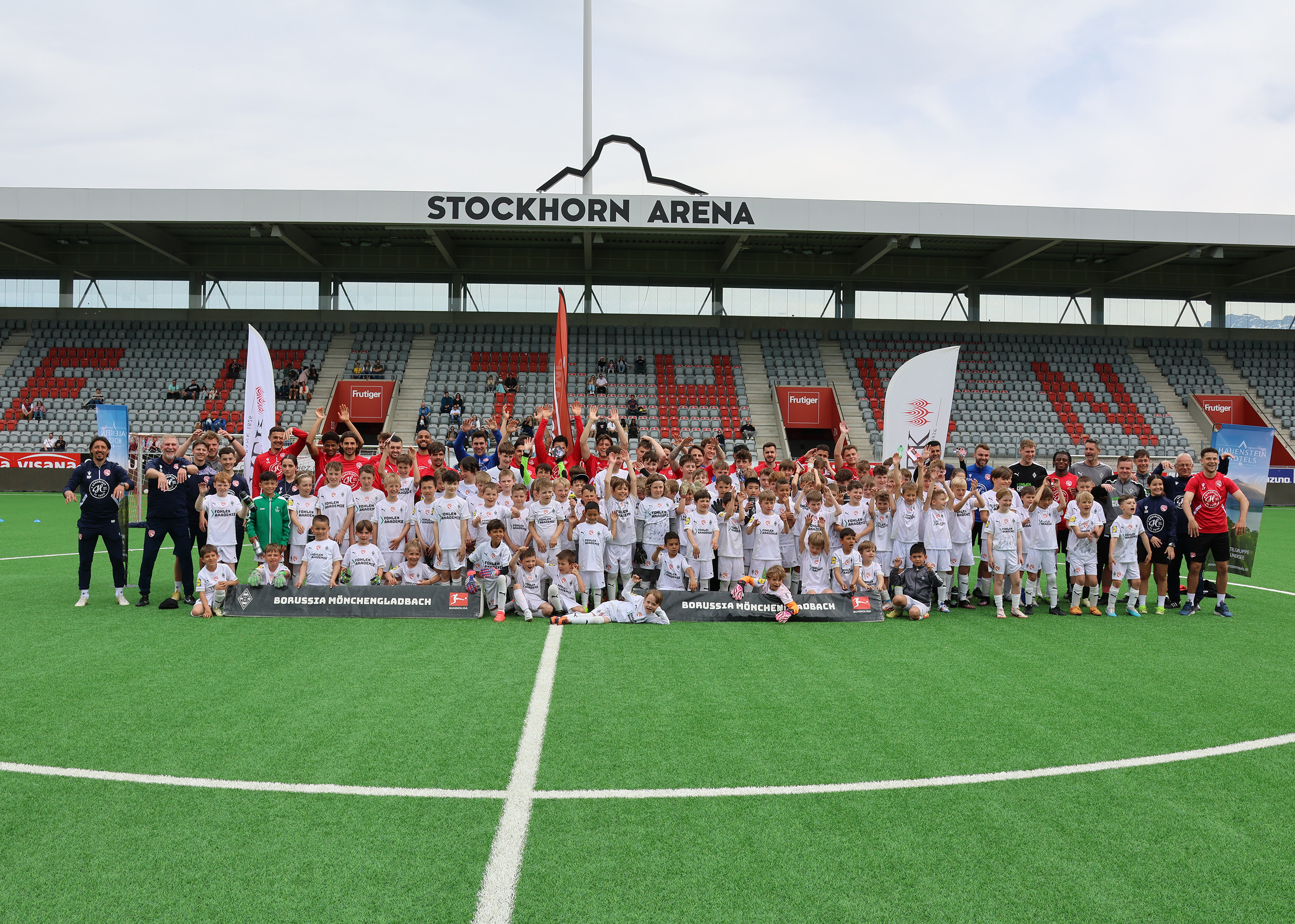 Der FC Thun wurde 1898 gegründet und hat sich vom regionalen Verein zu einem festen Bestandteil des Schweizer Profifussballs entwickelt. Nach fünf Jahren in der Challenge League spielt er seit der Saison 2025/26 wieder in der Super League. Bis 1927 trainierte der Club auf der Thuner Allmend, die eigentlich vom Militär genutzt wurde. Gemäss Jubiläumszeitschrift zum 50-jährigen Bestehen des FC Thun fielen deshalb sogar einmal Torstangen Bombenübungen zum Opfer. Nachdem ein Offizierspferd das Bein gebrochen hatte, weil es in ein Torpfostenloch getreten war, musste der Verein umziehen. Im Areal Grabengut, wo sich heute die Kunsteisbahn befindet, fanden die Fussballspieler des FC Thun eine neue Heimat und packten bei der ersten Platzsanierung gleich selbst mit an. 1954 folgte dann der Umzug ins Lachenstadion, das über ein halbes Jahrhundert hinweg Spielstätte blieb. Seit 2011 trägt der FC Thun seine Heimspiele in der Stockhorn Arena aus, einem modernen Stadion mit rund 10’000 Plätzen.