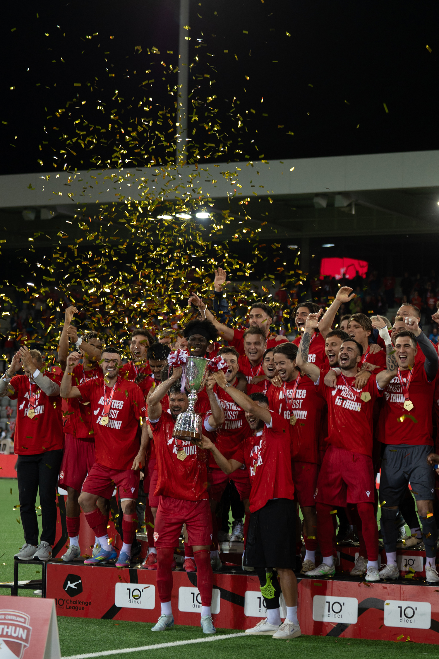 Der FC Thun gilt als Ausbildungsverein, bietet jungen Talenten Chancen und ist stark in der Region verwurzelt. Trotz begrenzter Mittel überzeugt das Team in Rot-Weiss mit Kampfgeist, Disziplin und herzhafter Unterstützung seiner treuen Fans. Unvergessen bleibt die Saison 2005/06, als die Thuner sensationell die Gruppenphase der Champions League erreichten und plötzlich namhaften Gegnern wie Arsenal London, Ajax Amsterdam oder Sparta Prag gegenüberstanden. Die Tickets für die drei Heimspiele wurden in einem Gesamtpaket verkauft, dies mitunter in den Niederlassungen der AEK BANK 1826. Viele Fans erinnern sich noch heute lebendig an das stundenlange, erwartungsvolle Anstehen für Tickets und die legendären Heimspiele im damals neu gebauten Stade de Suisse (aktuell wieder Stadion Wankdorf) in Bern. Und einige Kundinnen und Kunden erinnern sich vielleicht noch an ihre uns damals zugetragenen Sorgen rund um das wirtschaftliche Wohl der AEK Bank, die aufgrund der grossen Menschenmengen vor den Bankgebäuden aufkamen.